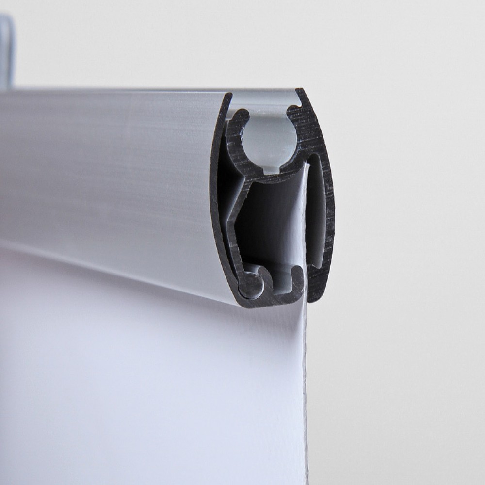 Das Banner Hängesystem ist ideal für den Einsatz von schwereren Materialien wie z.B. Textilbannern. Selbst große Formate hält das Bannerprofil problemlos.
